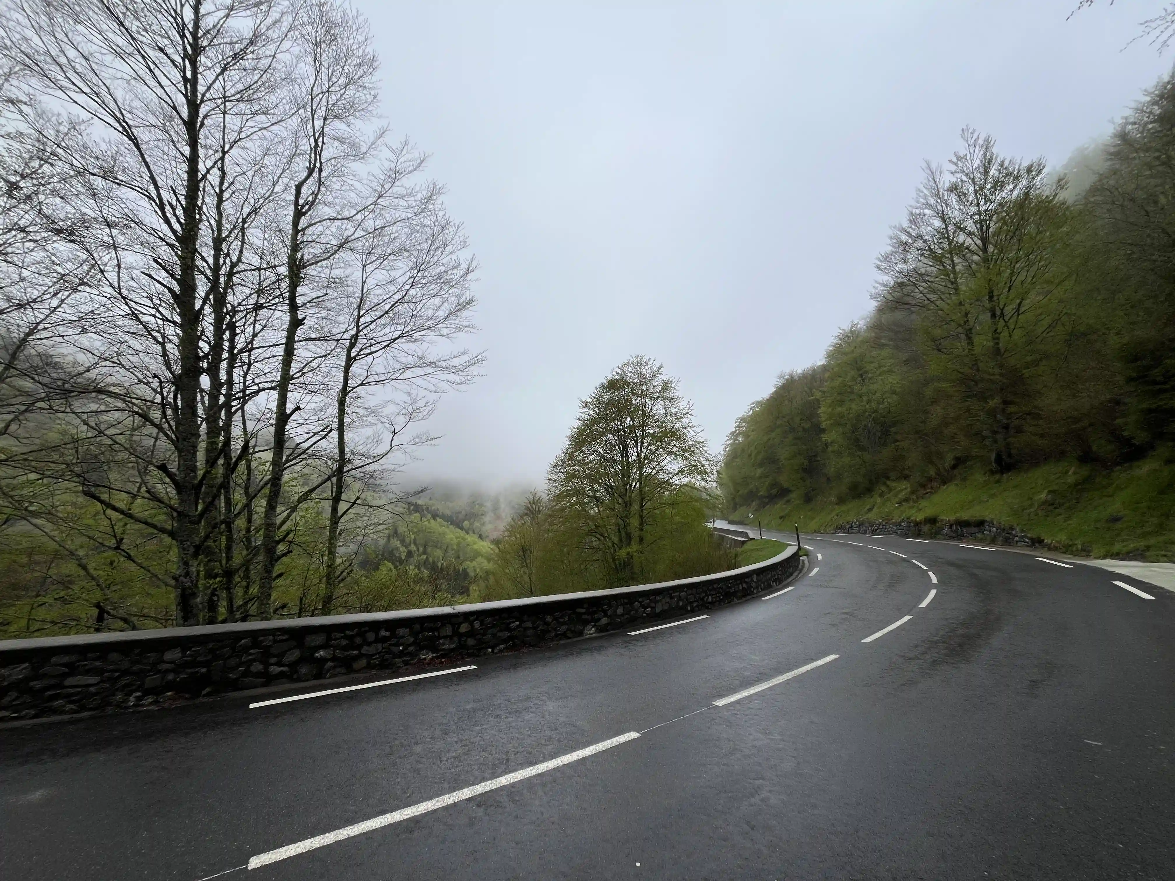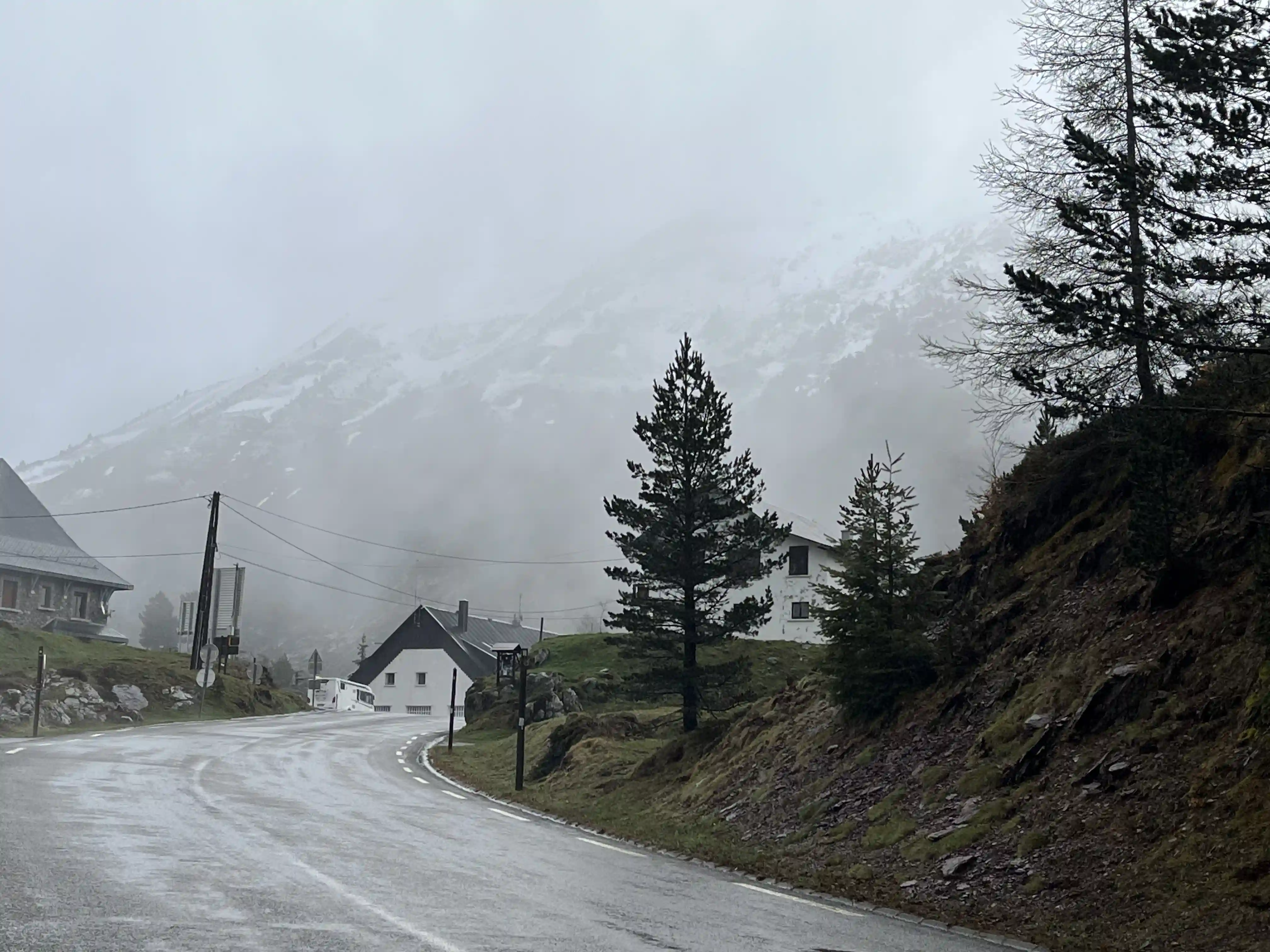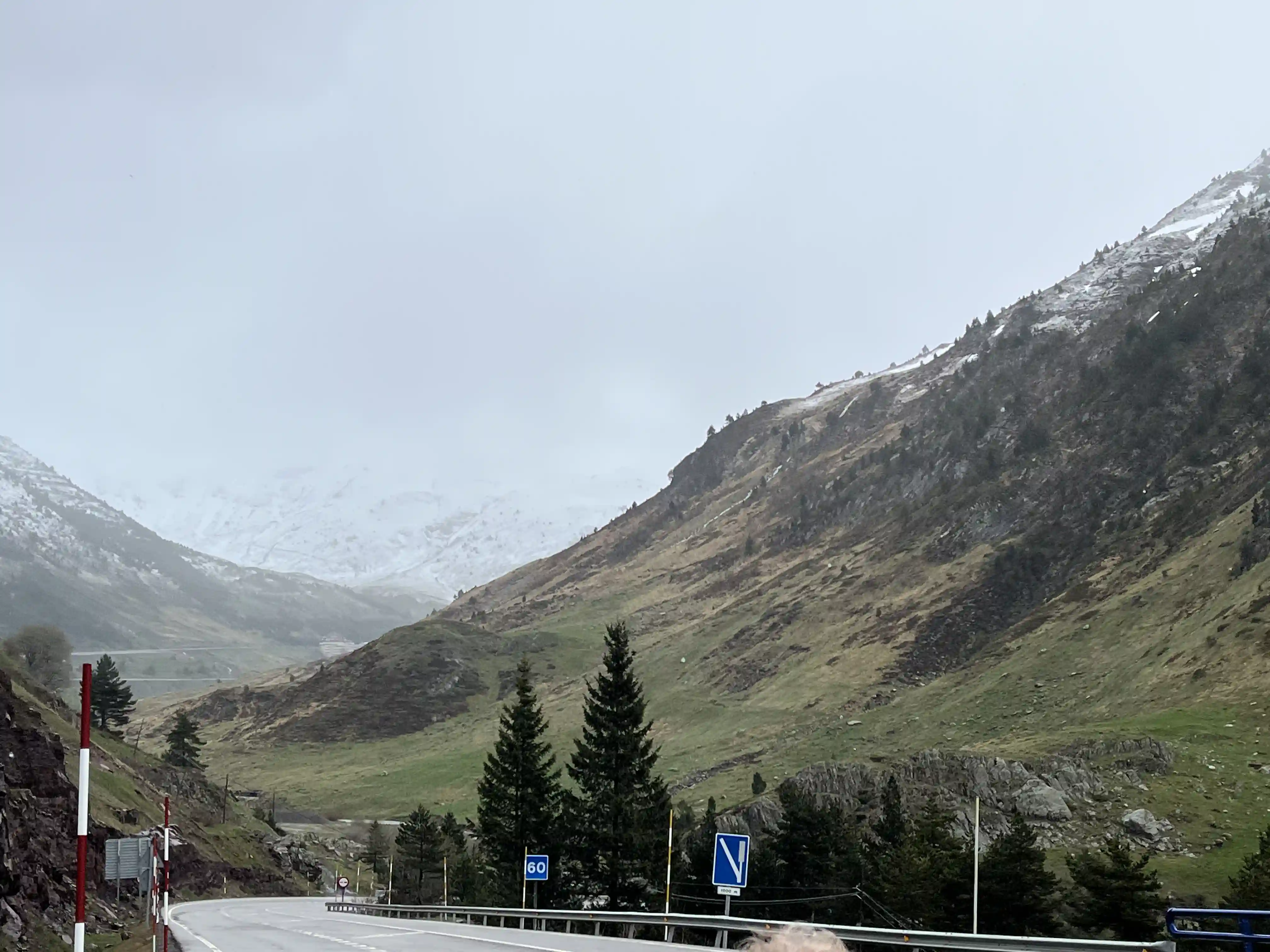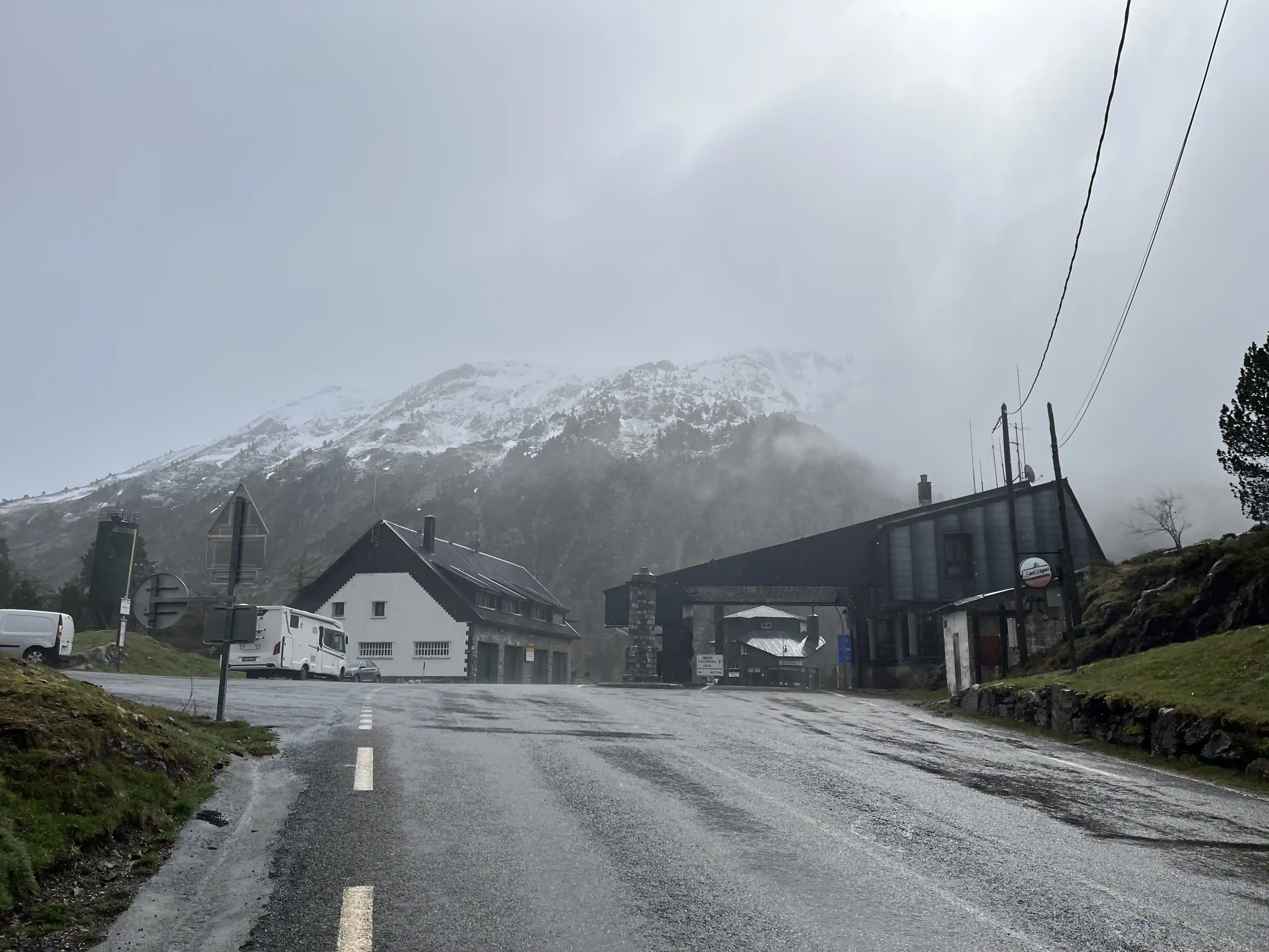 There wasn’t much in the way of traffic to worry about, which was great, and I snapped dozens of photos every time the view changed. Then, about 200m before the first aid station (at Col de Somport) I looked up to see my first snow-capped mountain. MIND BLOWN. I’d been smiling a lot before this, but this really stretch my smile from ear to ear. There was a fair amount of low-level fog around the place so the views at this point weren’t perfect, but I wasn’t complaining.