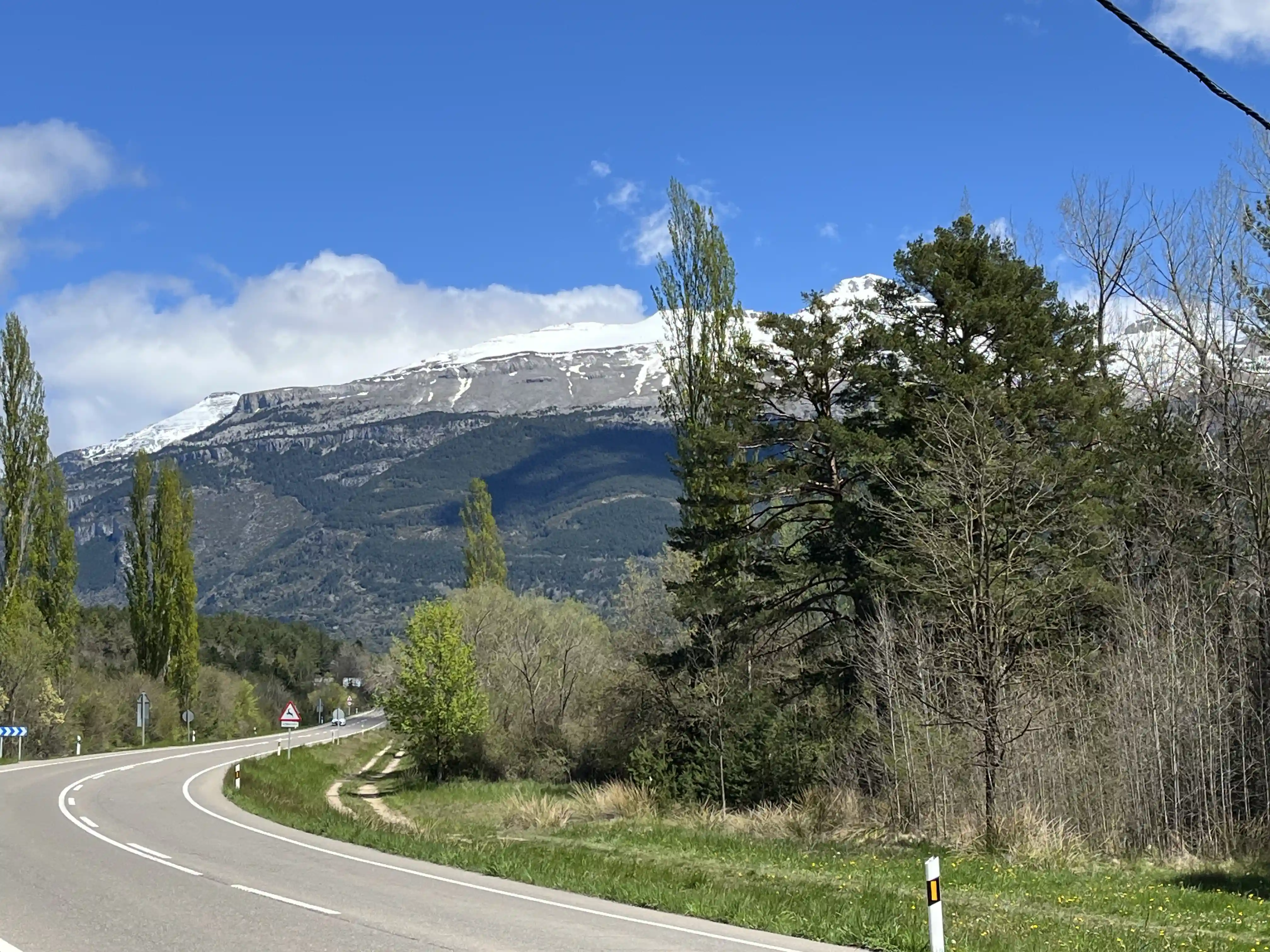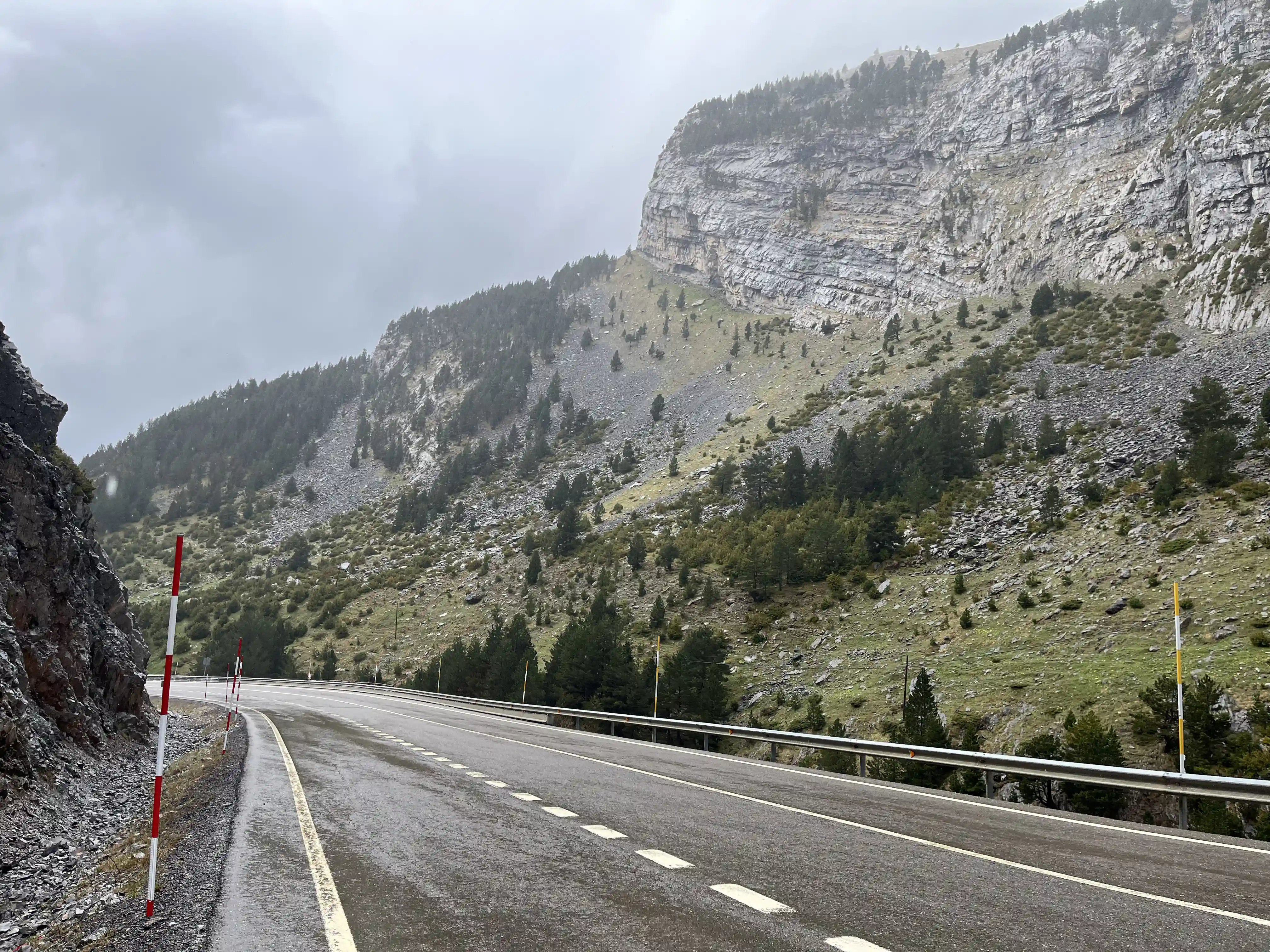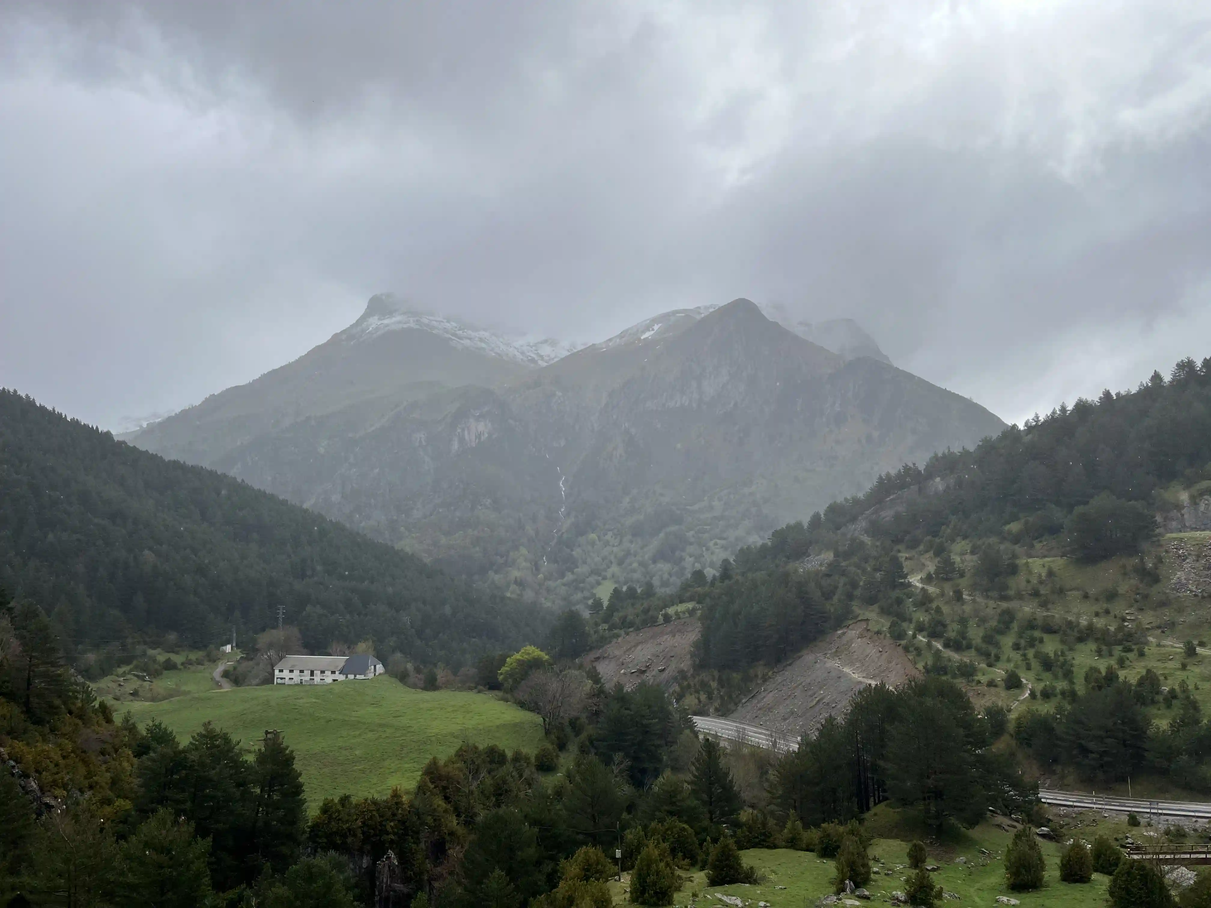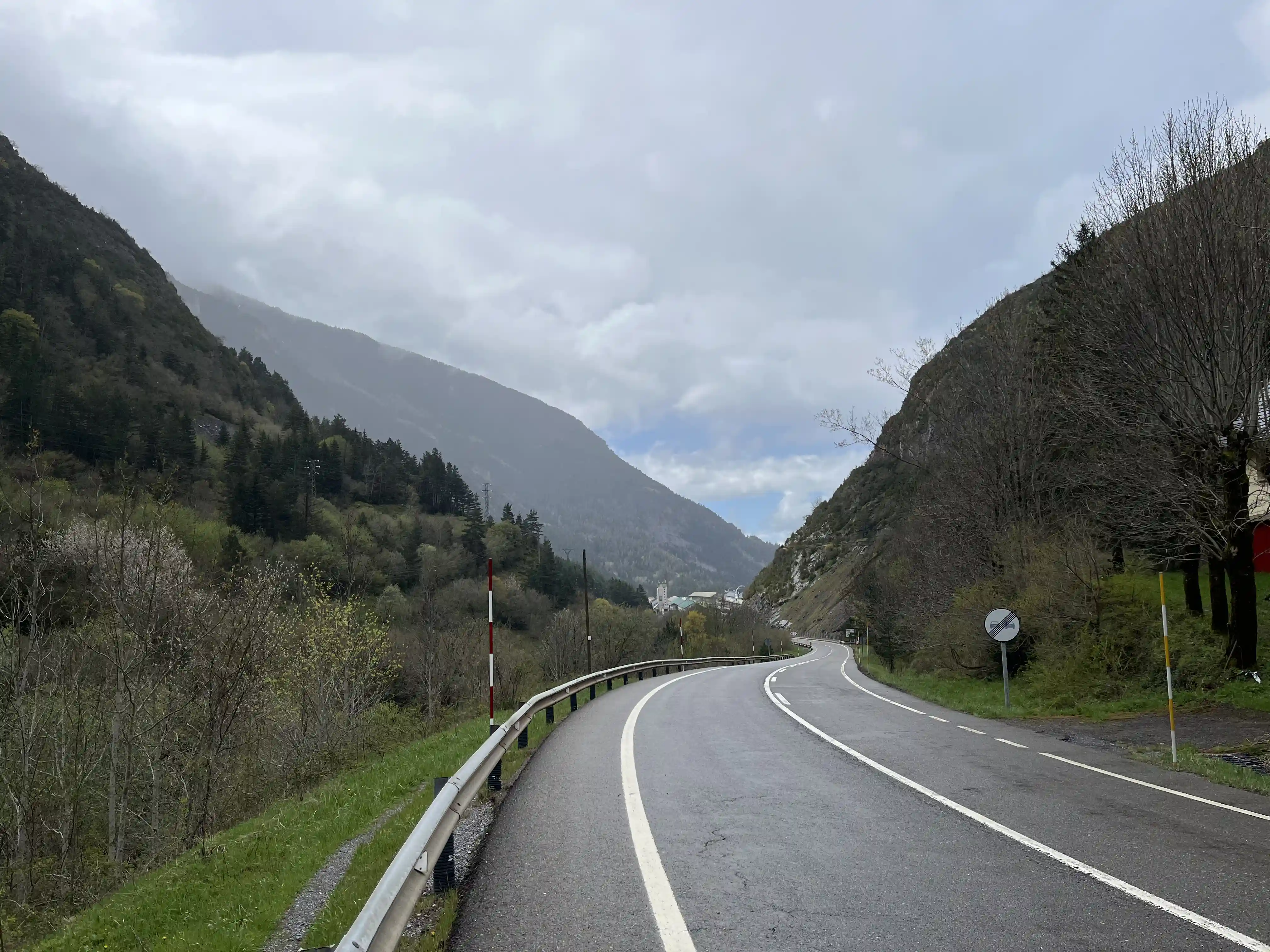 There wasn’t much in the way of traffic to worry about, which was great, and I snapped dozens of photos every time the view changed. Then, about 200m before the first aid station (at Col de Somport) I looked up to see my first snow-capped mountain. MIND BLOWN. I’d been smiling a lot before this, but this really stretch my smile from ear to ear. There was a fair amount of low-level fog around the place so the views at this point weren’t perfect, but I wasn’t complaining.